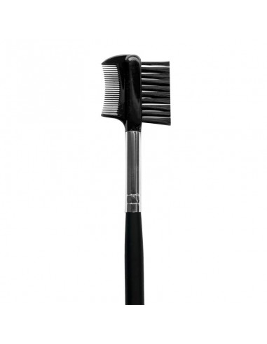 Peine y cepillo que separa las pestañas, define y elimina excesos de maquillaje de las cejas.